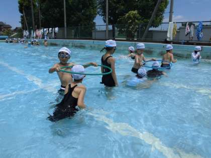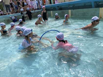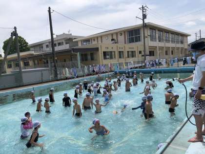 2回目の水泳学習の様子です。ペアになって潜ったり輪くぐりをしたりとても楽しそうでした。初日よりも着替えや整列もすばやくなりより安全に水泳学習をすることができました。花丸です!