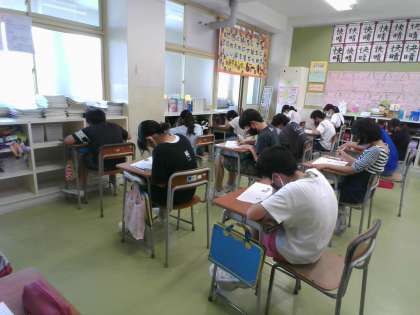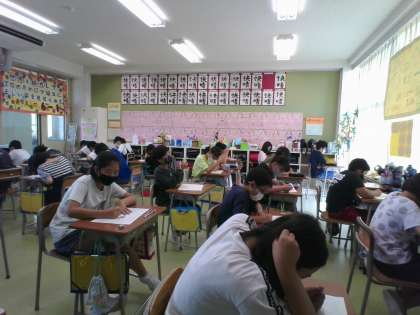 7月に突入し、夏休みが近づいています。6年生は今日から期末テストが始まりました。今日は国語のテストです。学習してきたことを出し切ろうと真剣にテストに取り組んでいます。夏休みまでの期間で、1学期のまとめをしっかり行っていきたいと思います。