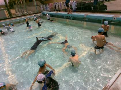 学習後には「ダルマ浮きができた。」、「蹴伸びができたよ。」と自分の成長を実感し、喜ぶ声が聞こえてきました。