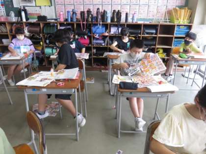 社会科では、身近な食料がどこから自分たちのところに届いているのか調べました。