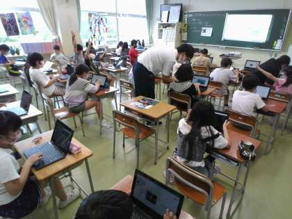 タブレットを活用し、先日の校外学習の思い出を新聞記事にしています。