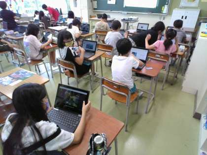 子供たちは写真と文章を組み合わせ、事実や感想を記事にして書き込みました。