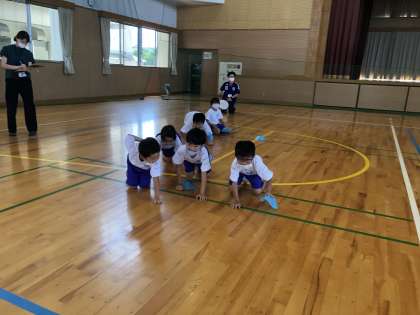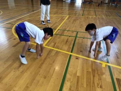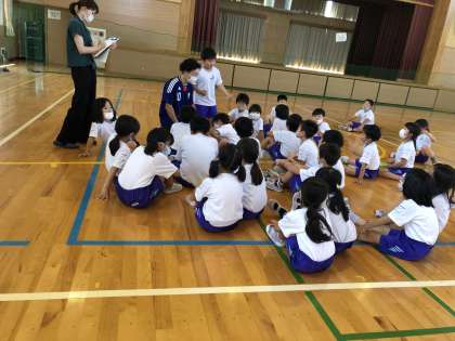 先週、2年2組で体育の研究授業を行いました。今回は動物になりきるだけではなく、「〇〇がきてたいへんだー!」に合わせて動く活動を取り入れました。子どもたちは変化を表そうとくるくる回ったり転がったり、とっても生き生きしていました。