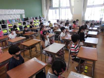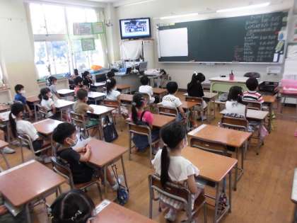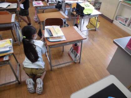 これまで、72日間たくさんご協力ありがとうございました。2学期もよろしくお願いします。写真は始業式(校内放送)と清掃の様子です。