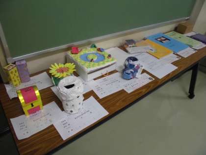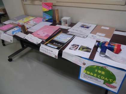 教室の前には、夏休み中に取り組んだ自由研究がずらりと並びました。思いがつまった作品ばかりで、とても見応えがあります。お互いの作品を褒め合う姿が素敵でした!
