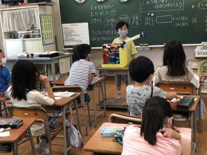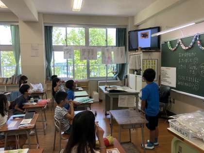 始業式の後には夏休みの作品を紹介したり思い出を伝えたりしました。