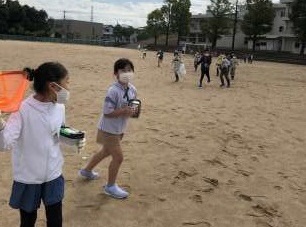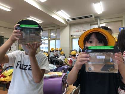 9月の生活科は生き物と触れ合う学習をします。2年生の子供たちは生き物探しが大好きです。向かう先はビオトープやチャレンジ山、畑等。夢中になって見つけていました。