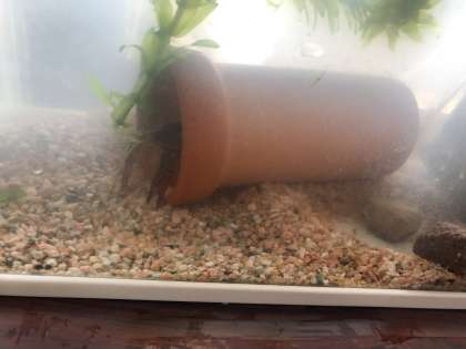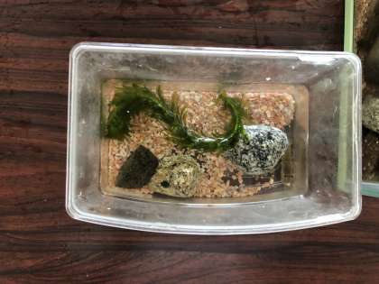 恥ずかしがりやのザリガニさんに石や家を用意してあげました。