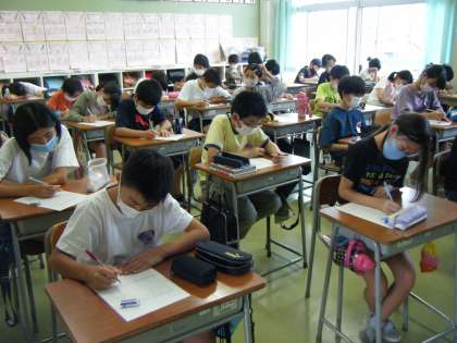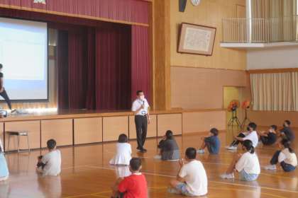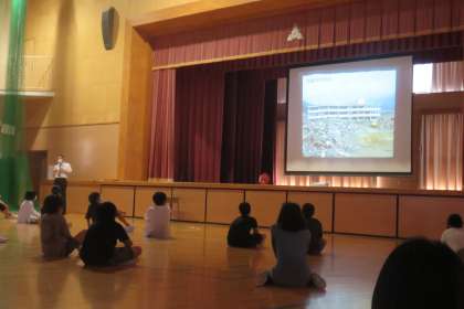 6年生は総合的な学習の時間では防災について、学習発表会では東日本大震災をテーマに学習を進めています。そこで校長先生から、地震についてや被災地に訪問されたときの様子についてのお話をしていただきました。いつもにこにこしていらっしゃる校長先生が重々しい表情で話されいるのを見て、子供たちもいつも以上に真剣に話を聞いていました。