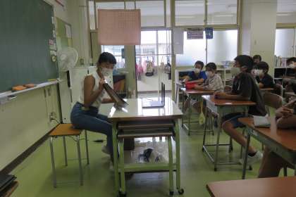 今日のいきいきタイムはリモート読み聞かせを行いました。図書委員会の6年生が画面に向かって、一生懸命読み聞かせを行っていました。聞いているクラスも画面上をよく見て、お話を聞いており、素敵な時間が流れていました。