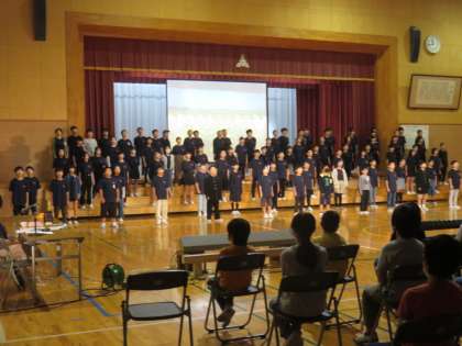 今日はリハーサルが行われました。例年なら全学年に見てもらう日ですが、今年はそれはできません。その代わり5年生が見に来てくれました。真剣に見つめる5年生に応えるように、6年生の子供たちも今まで以上の頑張りで演技をすることができました。残り2日、最後の仕上げをして、本番では最高の発表が見せられるように頑張りたいとさらに気持ちを高めたようです。