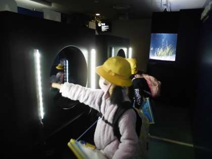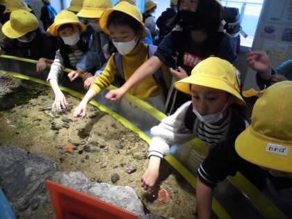 みんなで水族館の中をぐるりと一回りした後、興味がある生き物を自由に観たり、絵を描いたりしました。実際に触れ合うことができるコーナーに夢中になる子、大きな水槽でのびのび泳ぐ生き物に癒されている子、小さな水槽の珍しい生き物に驚いている子、それぞれお気に入りの場所で満喫していました。