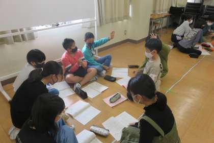 あれよあれよと宿泊学習まであと3日となりました。宿泊学習ではグループでの活動が基本となります。グループで話し合い、登山の順番や持ち物、ピザ作りの担当などを決めました。楽しそうに話し合っている様子から、宿泊学習を心待ちにしている様子が伝わります。