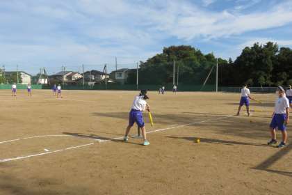6年生は体育でティーボールを学習しています。女子はバットを持つことも初めての子も多く、まずは基本的な動きの練習をしました。男子がアドバイスをしながら、楽しそうに練習していました。早く試合ができるといいですね!