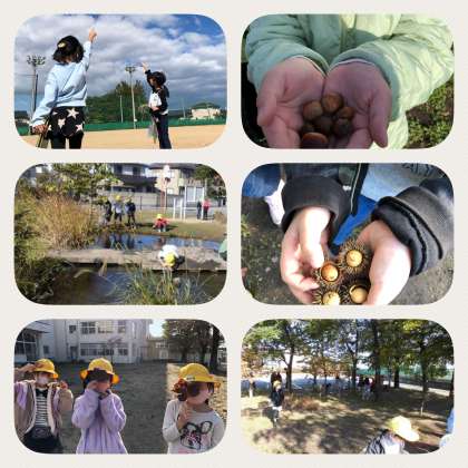 2年生国語「秋がいっぱい」の学習で晴れた日に秋探しをしています。大好きなグラウンドもビオトープもすっきり秋らしくなっています。赤とんぼを追いかけたり、秋の草花で花束を作ったり自然と親しんでいるときの表情はとっても幸せそうです。「前よりも空が遠いよ」「落ち葉を踏むといい音がするよ」「いろんな木の実を見つけたよ」とそれぞれの秋を感じていました。