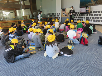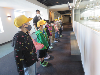 源ますのすしミュージアムでの見学の様子です。工場の学習で学んだ「はたらく人のくふう」を思い出しながら、担当の方にお話を聞きました。子供たちは、工場の中で実際にものが作られていく工程を興味津々な様子で見学していました。