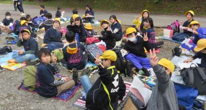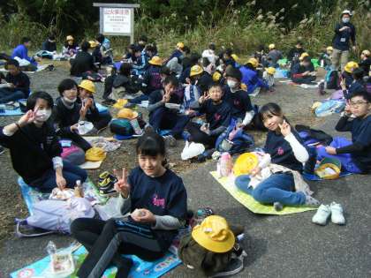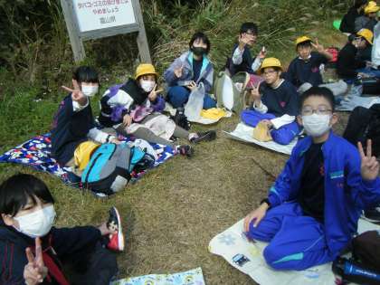来拝山登山の後はお弁当タイムです。おうちの方が作ってくださったお弁当を美味しそうに食べていました。登山後ということもあり、格別だったようです。