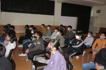 毎年行われている「こころの劇場」ですが、今年は動画視聴となりました。大きなスクリーンで見るプロのミュージカルに子供たちは約120分釘付けになっていました。学習発表会で劇をしたからこそ、改めてプロの演技の素晴らしさを感じられたようです。終わったあとには自然と拍手が起こっていました。