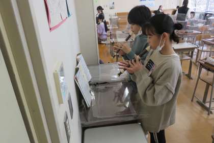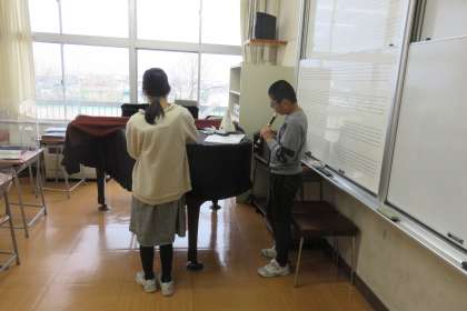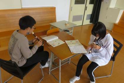 音楽の学習ではリコーダーの学習をいています。ペアで教え合ったり、合わせて吹いたりしながら、一生懸命練習しています。