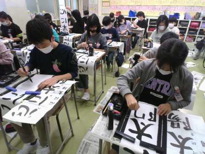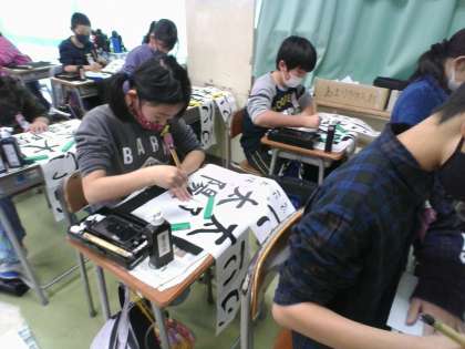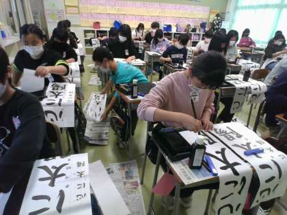 書写では書き初めの練習が始まっています。小学校生活最後の書き初めです。心を込めて真剣に練習しています。