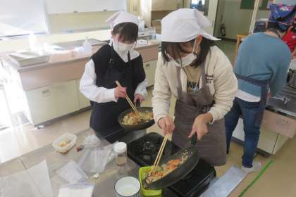 主菜づくり3組編です。みんなで声をかけながら、助け合いながら調理実習を行うことができました。片付けまでばっちりです!
