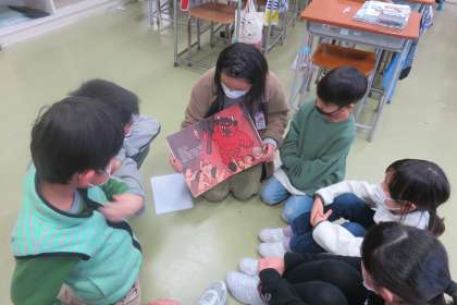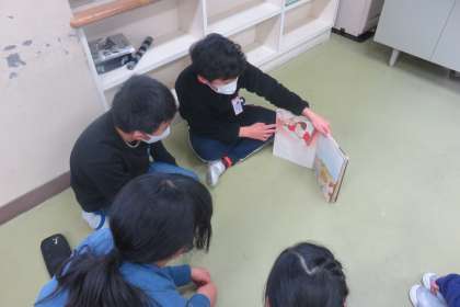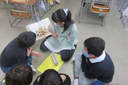 ということで、今日は読み聞かせを行いました。練習のかいあってどの班も楽しそうに6年生の読み聞かせを聞いていました。みんなで本に向かい合う温かい時間が流れていました。