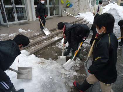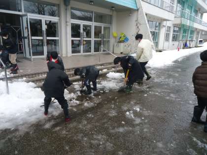 19日(水)のいきいきタイムに児童玄関前で雪かきをしている5年生の姿がありました。「雪かきをしたいです」と自主的に担任の先生に伝えてきたとのことです。様々な活動で、最上級生に向けての意識を高めている多くの5年生の姿が見られます。大人になとっては、うんざりするような雪かきですが、子供たちにとっては、心を育てる大切な活動となっています。今後も楽しみです。