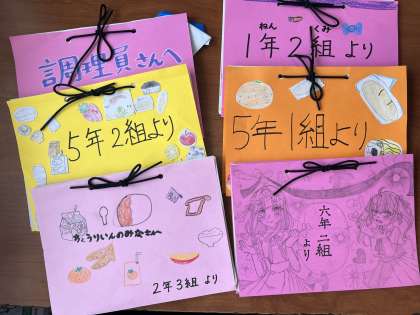 今週は給食週間です。全校児童が調理員さんへの手紙を書きました。