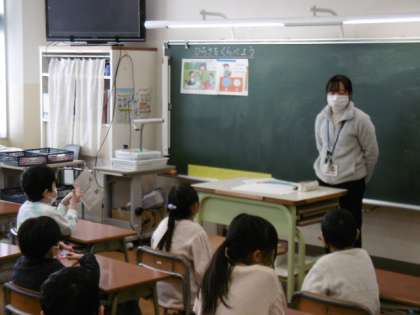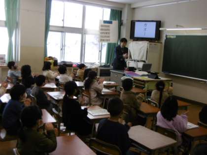 1年生の学習の様子です。1組では、国語科「ことばを見つけよう」、2組、3組では算数科「どちらがひろい」の学習に取り組んでいます。子供たちは、目を輝かせながら学習に取り組んでいます。