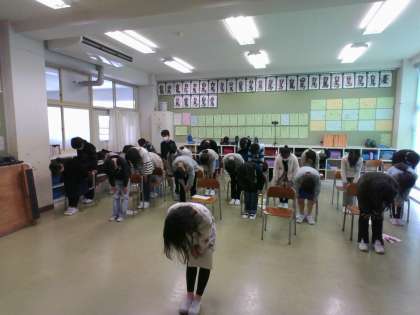 子供たちは、小学校に入学してできるようになったことや、最近頑張っていることを発表しました。式を終えた子供たちは、とても満足そうな表情でした。