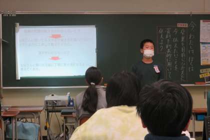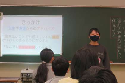 発表後の振り返りでは「友達の発表を聞いて、改めて色々な人に支えられていると感じた」「自分も将来に向けて目当てをもって行動したい」「正しいことをできる人になりたい」と、友達のスピーチからも感じることが多かったようです。