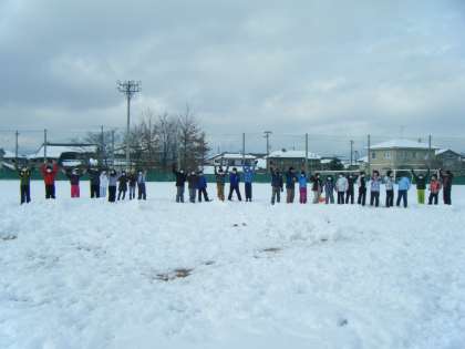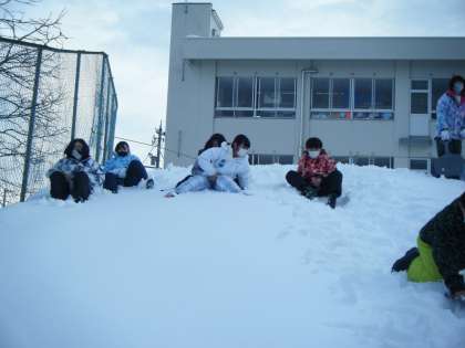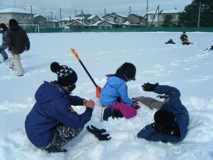 久しぶりにまとまった雪が降りました。以前から雪遊びを楽しみにしていた6年生の子供たち。グラウンドに出ると気持ちよさそうに寝転がったり、滑って遊んだりして、雪の感触を存分に味わっていました。写真では見えにくいですが、みんなで雪文字づくりにも挑戦し、学級目標の「さいこう」を完成させました。