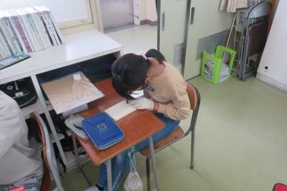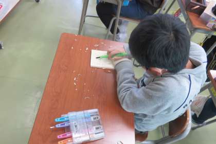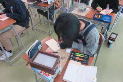 図画工作科では卒業制作としてオルゴールの天板づくりに取り組んでいます。小学校生活の思い出を込めて丁寧に彫刻刀で彫り進めています。卒業まで19日、完成が楽しみですね!