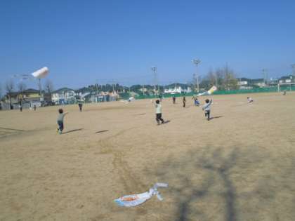 ぬけるような青空。あいにく風がなかったのですが、ようやく雪がとけ、待ちに待った凧揚げをしました。広いグラウンドを駆け回り、「先生、こんなにあがったよ!」とうれしそうでした。