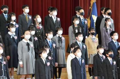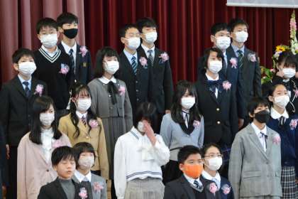 卒業式も終盤にさしかかり、最後は門出の言葉です。学習発表会で鍛えただけあり、台詞の声の大きさも歌声も素晴らしかったです。マスクをしていることを忘れるぐらいの門出の言葉でした。今までの6年生の頑張りが浮かび上がってきて、涙が止まりませんでした。子供たちの中にも涙を流している子もおり、まさに万感の思いだったようです。今までの感謝の思いを伝えきった子供たち。最後の最後まで大きな感動を私たちにくれる素晴らしい6年生でした。