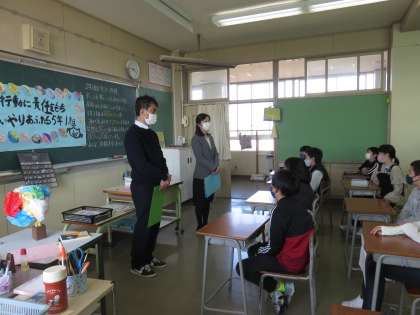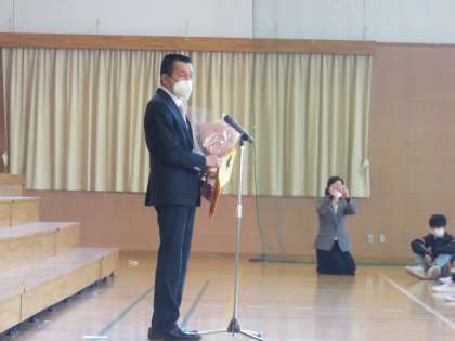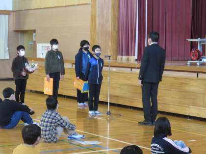 本年度で退職される校長先生、また1年間学習面でお世話になった先生方に感謝の言葉とメッセージカードを手渡しました。