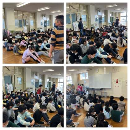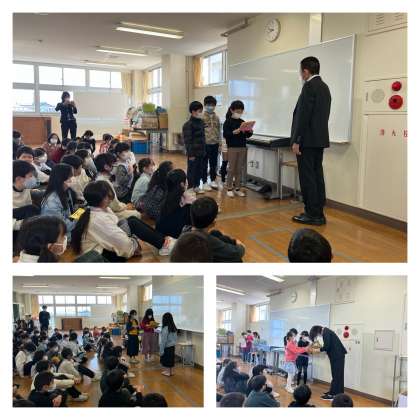 修了式の日、お別れ会と学年集会をしました。お世話になった先生方や転出する友達に感謝を伝えました。2年生の良いところを伝えてくださったり、お手紙を喜んでくださったりしてとても嬉しい時間でした。2年生の1年間をみんなで振り返ったときには「2年間楽しかったよ、ありがとう!」「クラスは変わってもこれからもよろしくね。」などと、お互いに気持ちを伝え合う姿が素晴らしく、成長を感じました。