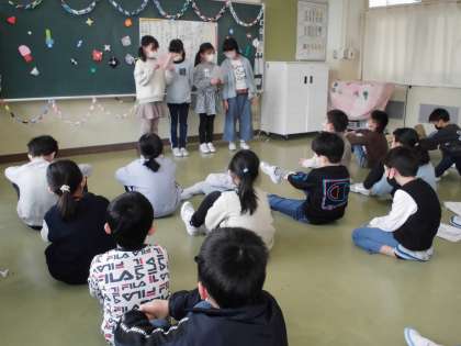 3組では、ジェスチャー伝言ゲームや思い出ランキング、ぬり絵パズル等をしました。これまでの思い出を振り返り、このクラスで過ごす最後の日をみんなで楽しみました。