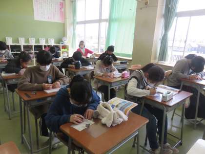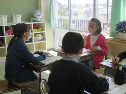 進級し、授業も始まりました。国語では、友達と一文ずつつないでお話をつくりました。みんなでつくることで、予想外の展開が起こる面白さを感じていました。算数では、つり合いのとれた図形の学習に入りました。