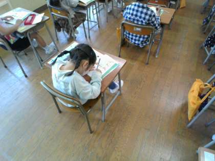 正しい姿勢や、書くときには左手で紙を押さえることに気をつけて、