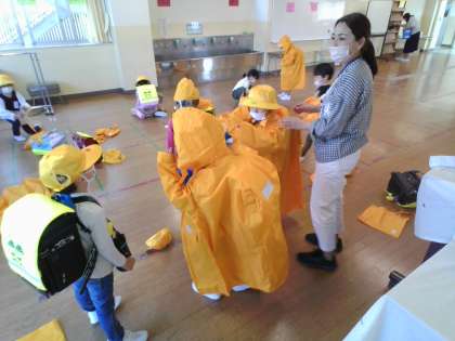 と、上手に雨がっぱを着る様子を見せてくれました。