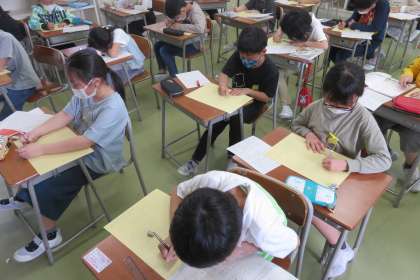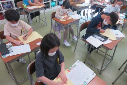 4年生の国語科では「春のうた」の視写に取り組んでいます。一文字一文字丁寧に書こうと頑張る姿が素敵でした。学習参観で掲示する予定です。