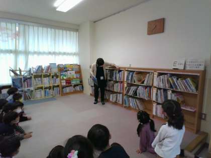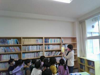静かに説明を聞いたり、元気に返事をしたりして、図書室の使い方について一生懸命学んでいました。