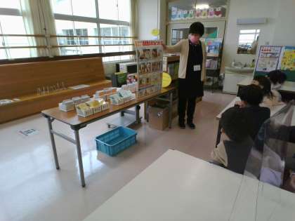 どこにどんな本があるかや、本の正しい扱い方などを司書の先生に教えてもらいました。