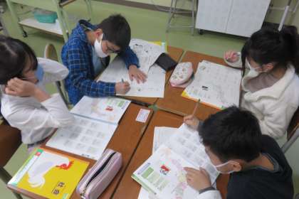 4年生の社会科では都道府県の学習をしています。富山県以外にも日本全国に沢山の都道府県があることを知り、地図を見ながら意欲的に調べています。活動を通して各都道府県の特色を知りたいと感じている子供たちです。