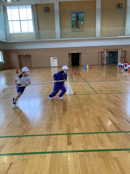 スポーツフェスティバルに向けて、体育科では短距離走や団体競技の練習を始めました。少しずつタイムが縮んだり、棒の扱いが上手になったりと上達しています。