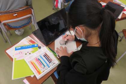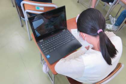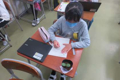 温かくなりヘチマの芽が出てきました。芽が出たヘチマをクロムブックで撮影し、自分の席で黙々と観察していました。これからさらに成長することを予想し、楽しみにしている4年生の子供たちです。