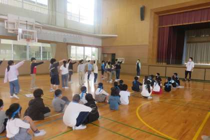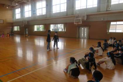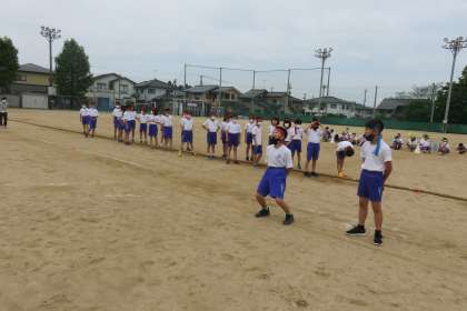 スポーツフェスティバルに向けて4年生はリーダーを中心に頑張っています。各団で決めたリーダーが声をかけながら綱引きの並び方や、かけ声の練習に取り組んでいます。