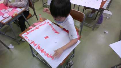 と、模様を生かしたり、形を組み合わせたりしながらオリジナルの作品を楽しそうに作り上げていました。