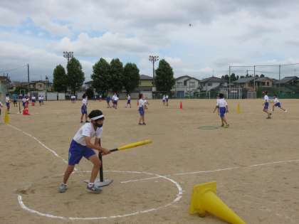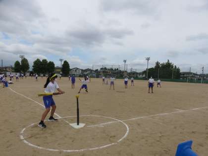 今年も体育でTボールに挑戦します。去年からレベルアップしたのは、守備の時に、ボールは全て投球・捕球を繰り返してつなぎます。